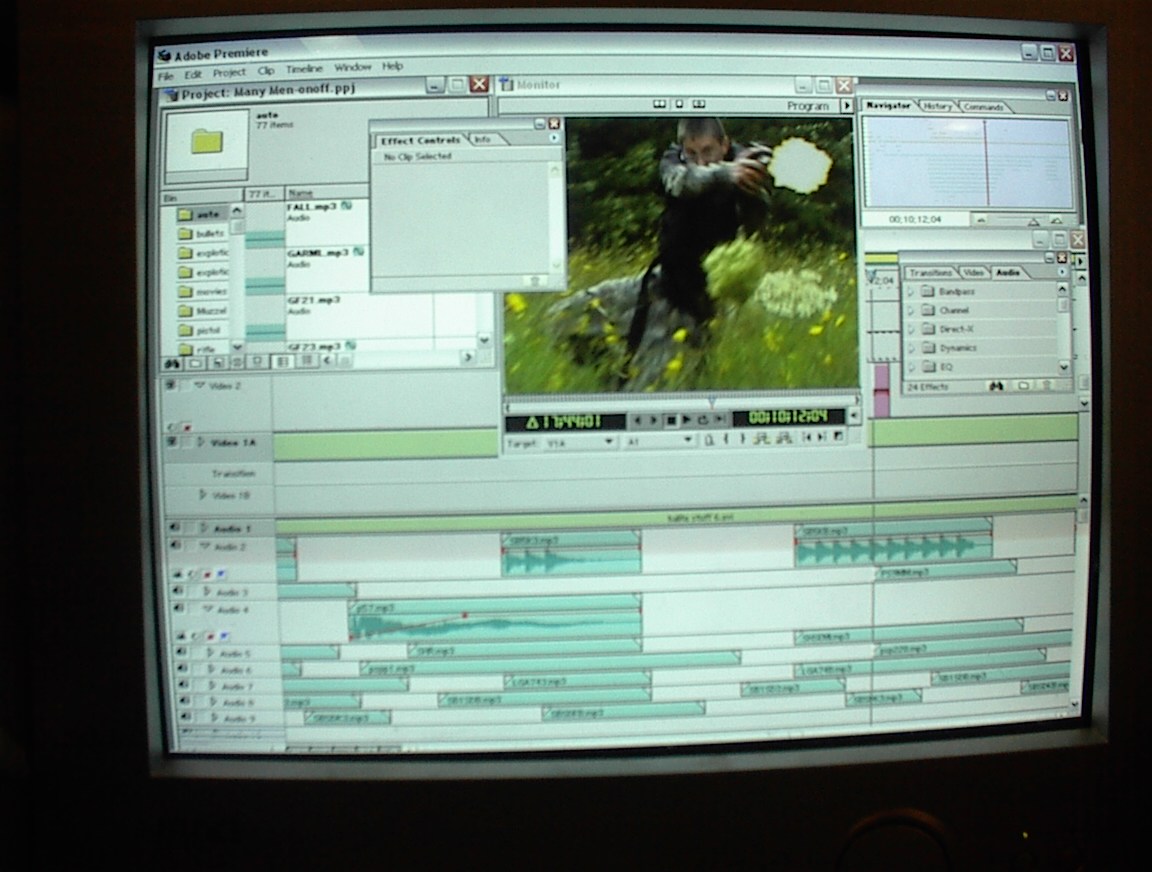 The one most used effect in halite was the muzzel flash!!! To do this you must use Adobe Premeire... The muzzel flash may not happen in real life all that much but is a must for shooting movies. You can add all the sound effects you want but with the muzzel flash you fell the shot with the sound!!! Learn how to do this by clicking on the photo above or below...